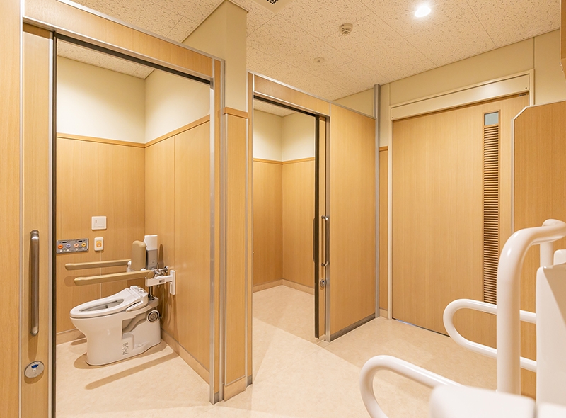 館内は段差を極力なくし、広い廊下や手すりの設置など、安全に移動できるバリアフリー設計です。車椅子がすれ違えるゆとりある構造により、身体の状態に合わせて無理なく過ごせる環境が整っています。誰にとっても使いやすく、安心して暮らしを続けられる施設づくりを大切にしています。